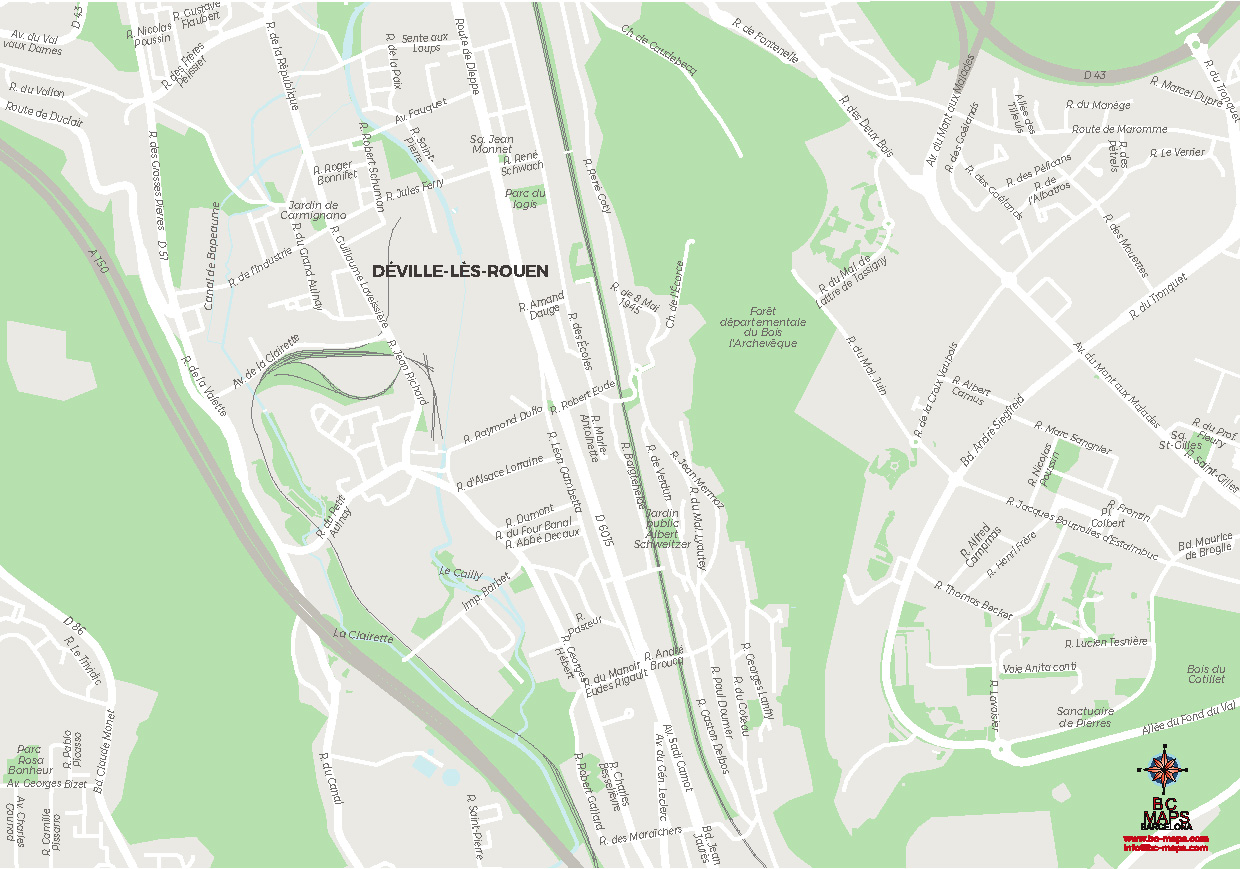 Fond de carte vectoriel de Déville-lès-Rouen sous adobe, illustrator, le fond de carte est construite en calques, elle est totalement modifiable, couleurs et polices