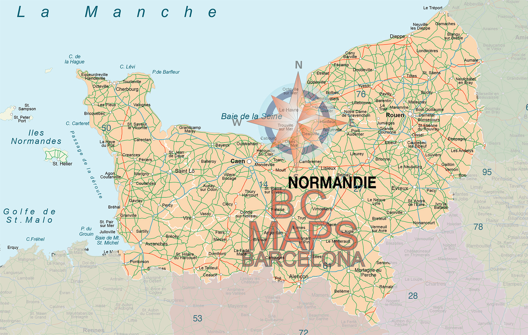 Fond de carte vectoriel de Normandie sous illustrator, toutes nos cartes vectorielles ont des calques graphiques.